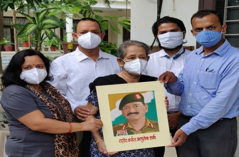 शहीद कर्नल आशुतोष के परिजनों को आर्टिस्ट चंद्रप्रकाश गुप्ता ने भेंट किया तैल चित्र