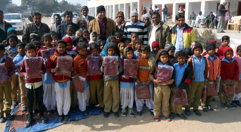 स्थानीय राजकीय आदर्श उच्च माध्यमिक विद्यालय के जरूरतमंद साठ विद्यार्थियों को सेवानिवृत कृषि पर्यवेक्षक महावीर प्रसाद माहर के सौजन्य से जर्सियों का वितरण किया गया। इस मौके पर पूर्व जिला प्रमुख पृथ्वीराज मील, पूर्व सरपंच ओमप्रकाश गेदर, विद्यालय विकास समिति उपाध्यक्ष वेदप्रकाश मेघवाल,पूर्व छात्र संघ अध्यक्ष रामू छींपा, मैनपाल मंगलाव, श्रीसीमेन्ट मजदूर यूनियन अध्यक्ष वेदप्रकाश टाक, सुखराम टाक ,रणजीत गेदर, सुरेन्द्र खटोड़, प्रधानाचार्य दलीपचन्द गोदारा आदि उपस्थित थे।