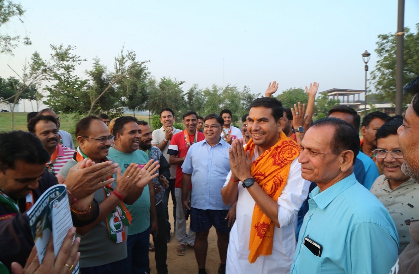 जयपुर। कांग्रेस नेता पुष्पेंद्र भारद्वाज ने शुक्रवार को मानसरोवर स्थित सिटी पार्क में जनसंपर्क किया। भारद्वाज ने मॉर्निंग वॉक कर रहे लोगों से उनकी समस्याओं को जाना और अपनी ओर से कराए गए विकास कार्यों के बारे में बताया। सभी लोगों ने पुष्पेंद्र भारद्वाज को चुनाव में पूर्ण समर्थन का भरोसा दिलाया।