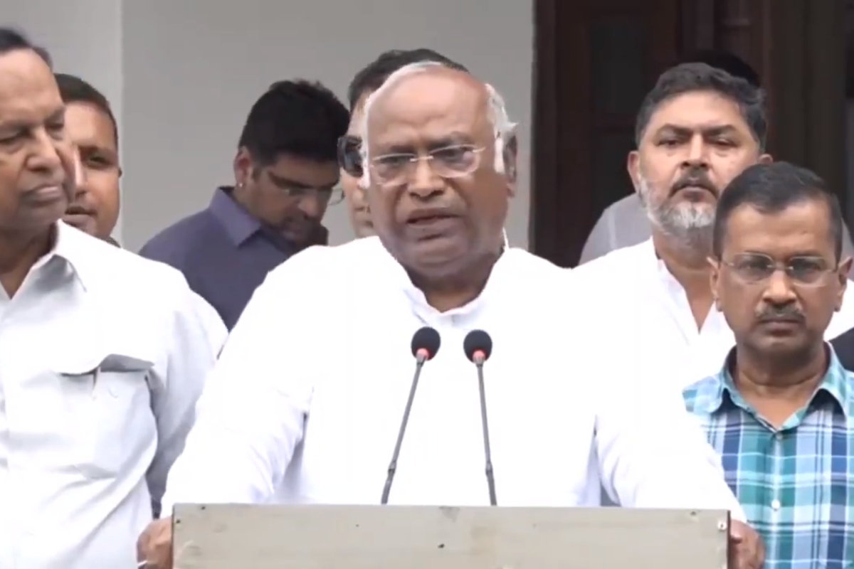 राजस्थान में हार-जीत को लेकर मीडिया संस्थान पर एक्जिट पोल की बहार चल रही है। इससे पहले कांग्रेस अध्यक्ष मल्लिकार्जुन खरगे इंडिया गठबंधन की बैठक के बाद प्रेस कॉन्फ्रेंस कर राजस्थान को लेकर बड़ा दावा किया है। उन्होंने कहा कि देश में इंडिया गठबंधन 295+ सीटों पर जीतेगी। वहीं, खरगे ने राजस्थान में 7 सीटों पर इंडिया गठबंधन के जीतने का ऐलान किया है।