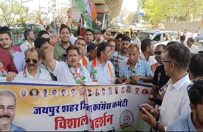 वहीं राजधानी जयपुर में शहर कांग्रेस की ओर से विरोध प्रदर्शन के नाम पर खानापूर्ति की गई। दरअसल अजमेर रोड पर कांग्रेस के लोकसभा प्रत्याशी प्रताप सिंह खाचरियावास के कार्यालय उद्घाटन के बाद दोपहर दो बजे कार्यकर्ता मुख्य सड़क पर ही एकत्रित हो गए और नारेबाजी करने लगे।