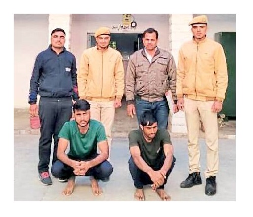 पुलिस ने सीकर जिले में श्रीमाधोपुर तहसील के भोजमेड निवासी मूल अभ्यर्थी तेजाराम गुर्जर पुत्र नागरमल और भरतपुर जिले में उच्चैन निवासी फर्जी अभ्यर्थी नरेन्द्र कुमार पुत्र हेमंतसिंह गुर्जर को शनिवार को गिरफ्तार कर लिया।