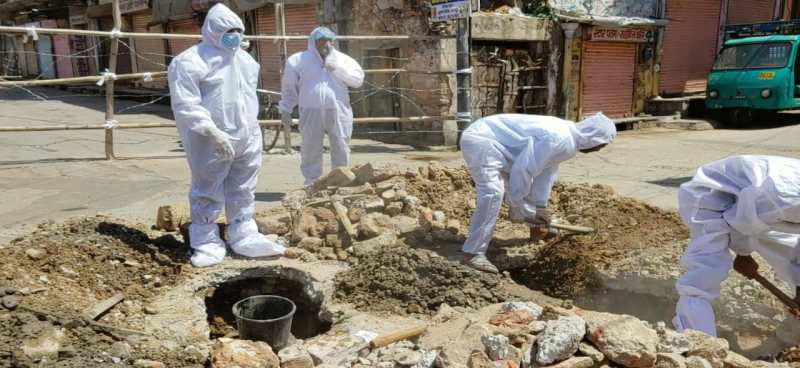 Corona ke karmvir . प्रदेश में कोरोना महामारी ( Coronavirus In Rajasthan ) के कारण उत्पन्न चुनौतीपूर्ण एवं विषम परिस्थितियों में जलदाय विभाग के 'कोरोना वारियर्स' भी लोगों को राहत प्रदान करने के लिए कर्तव्य के मोर्चे पर डटे हुए हैं। जयपुर के परकोटा क्षेत्र में लागू कर्फ्यू के बीच रामगंज क्षेत्र में दूषित पानी की शिकायत पर पूरी जिम्मेदारी और संवेदनशीलता के साथ अपने फर्ज को निभाते हुए जलदाय विभाग के तकनीकी और संविदा कर्मिर्यो ( Water Works ) ने बुधवार को सहायक अभियंता और कनिष्ठ अभियंता की देखरेख में फॉल्ट रिपेयर कर स्थानीय लोगों को राहत प्रदान की।