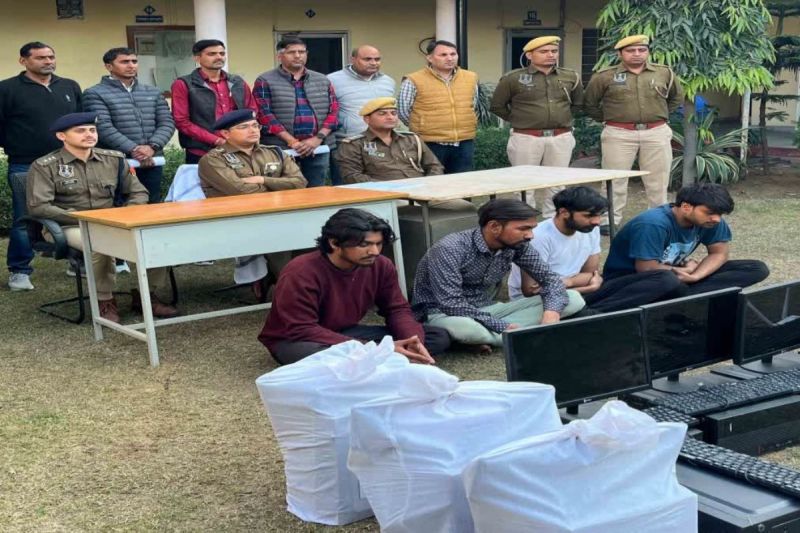 जयपुर। शिप्रापथ थाना पुलिस और साइबर सैल की संयुक्त कार्रवाई में ई-मित्र की आइडी देने के नाम पर फर्जी कॉल सेंटर चलाकर 15 लाख रुपए ठगने वाले चार आरोपियों को गिरफ्तार किया गया है। पुलिस ने इनके पास से 9 मोबाइल फोन, 13 कम्प्यूटर, 1 लैपटॉप, वाईफाई डिवाइस, बायोमेट्रिक मशीन और 78 हजार रुपए नकद जब्त किए हैं। पुलिस ने यह कार्रवाई साइबर शील्ड अभियान (2-31 जनवरी) के तहत की।