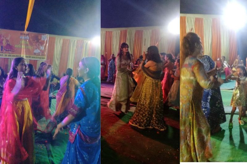अपना आंगन अपार्टमेंट के पास शाम 6 बजे माता की आरती के साथ डांडिया महोत्सव की शुरुआत हुई। माता रानी की आरती के साथ गरमा व डांडिया कार्यक्रम शुरू हुआ। कार्यक्रम में महिलाओं ने महा-आरती और गरबा किया।