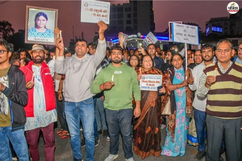 प्रदेश प्रवक्ता अभिषेक जैन बिट्टू ने कहा कि विरोध प्रदर्शन और कैंडल मार्च के बाद सात सदस्यों के दल ने मुख्यमंत्री भजनलाल शर्मा के नाम पुलिस कमिश्नर के जरिए पुलिस अधीक्षक ललित शर्मा को ज्ञापन सौंपा। इस दौरान अमायरा मौत मामले में निष्पक्ष न्याय की गुहार लगाई गई। उन्होंने कहा कि शिक्षा विभाग की ओर से गठित जांच समिति ने दो दिन पहले अपनी जांच रिपोर्ट संयुक्त निदेशक को सौंपी थी। उन्होंने कमेटी की जांच पर सवाल खड़े किए।