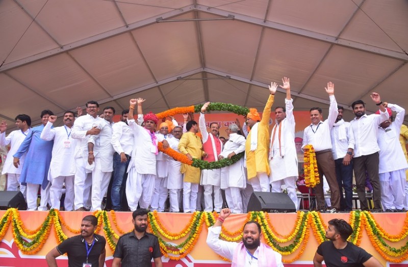 जयपुर। प्रदेश में इस साल के अंत में होने वाले विधानसभा चुनाव से पहले समाजों के शक्ति प्रदर्शन का दौर जारी है। हाल ही में कुमावत महापंचायत के बाद रविवार को राजधानी जयपुर के विद्याधर नगर स्टेडियम में माली महासंगम आयोजित हुआ। पारंपरिक परिधानों और गुलाबी झंडें थामे लोगों का जोश पूरी तरह से देखने लायक रहा। प्रदेश के तमाम जिलों के अलावा मध्यप्रदेश और अन्य राज्यों से बड़ी संख्या में माली-सैनी, कुशवाह, शाक्य, मौर्य समाज के लोग पहुंचे।