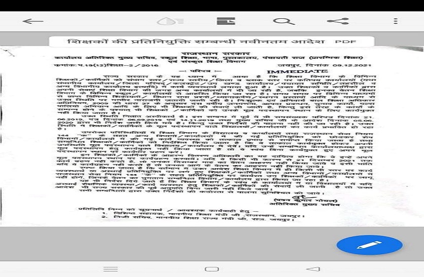 उधर संयुक्त निदेशक कार्मिक शिक्षा निदेशालय बीकानेर द्वारा एक ही पद पर न्यायालय बाद या अन्य कारणों से 2 शिक्षकों के कार्य की सूचना मंगवाई गई हैं। सूत्रों ने बताया है कि गाइडलाइन निर्धारित कर ऐसे दौरे पदस्थापन को समाप्त कर शिक्षकों को शिक्षण कार्य के लिए दूसरे आवश्यकता वाले स्कूलों में भेजा जाएगा।