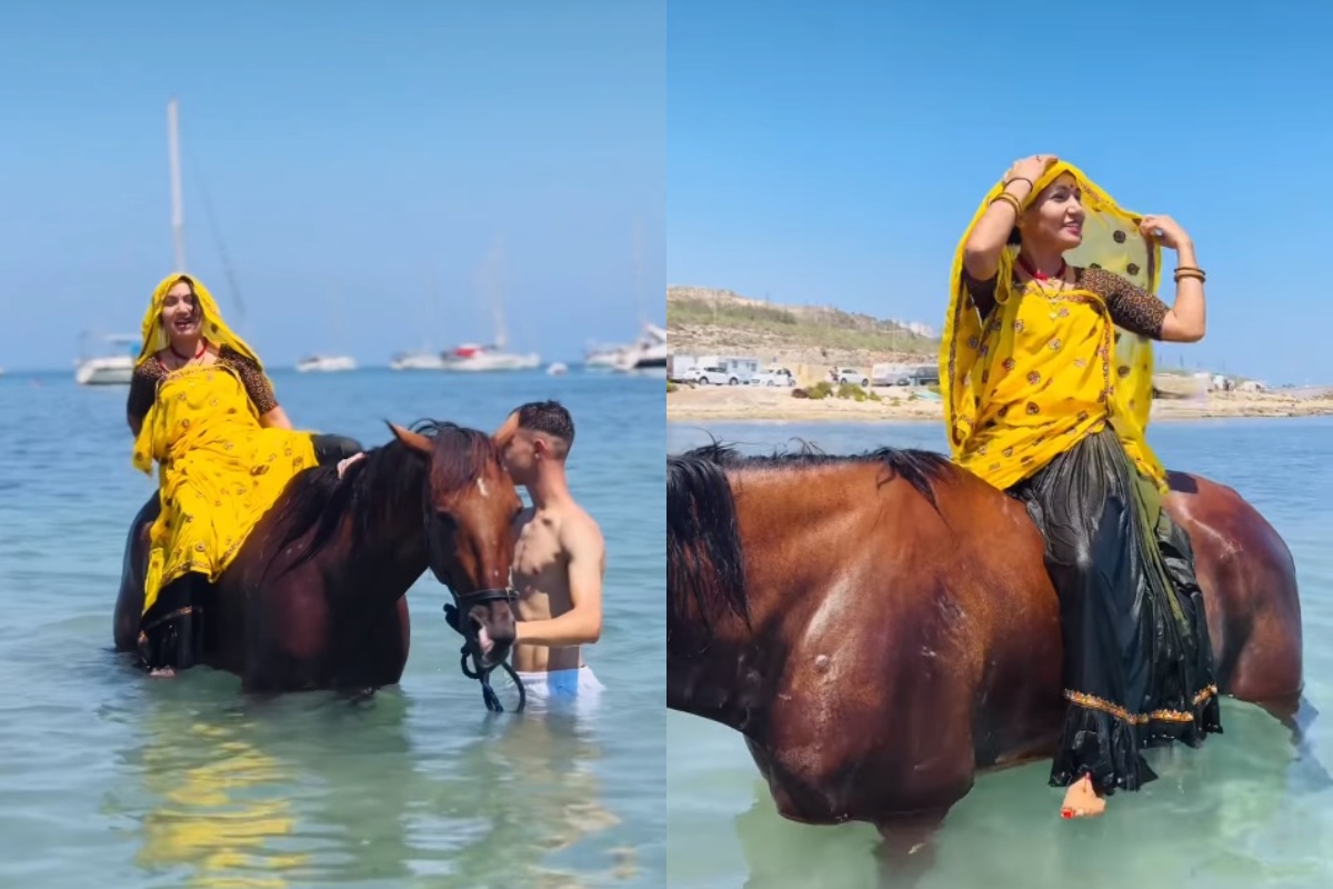 Social Media Viral Video: विदेश की 'वायरल काकी' यानी धोली मीणा का एक वीडियो सोशल मीडिया पर छाया हुआ है। वायरल वीडियो में धोली मीणा माल्टा में 'घाघरा-लूगड़ी' पहने घुड़सवारी करते नजर आ रही है। इसे अब तक लाखों लोग देख चुके है। इस से पहले भी एक वीडियो वायरल हुआ था जिसमें वह मोटर बोट दौड़ाती नजर आ रही थी।