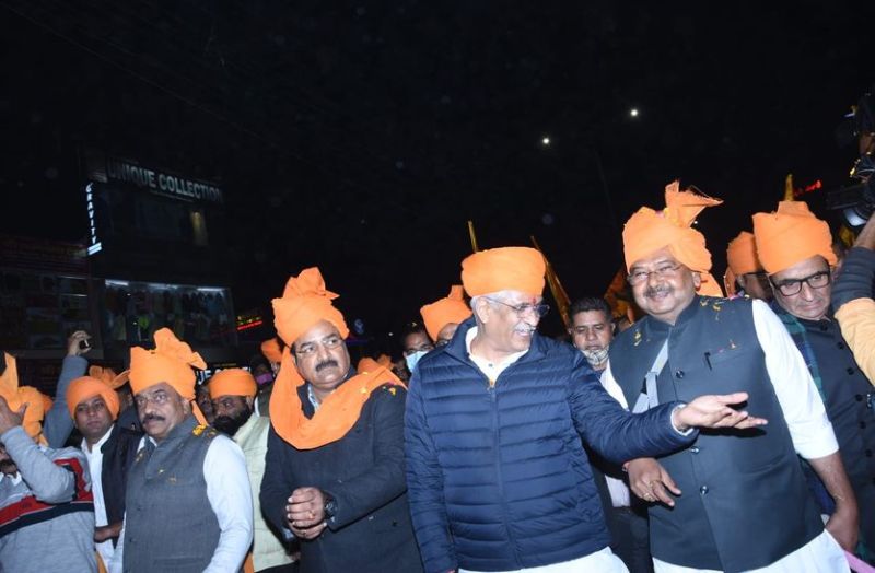 झोटवाडा पुलिया से शुरू हुई पैदल रैली में केंद्रीय जल शक्ति मंत्री गजेन्द्र सिंह शेखावत (Union Jal Shakti Minister Gajendra Singh Shekhawat) सहित खाद्य एवं नागरिक आपूर्ति मंत्री प्रताप सिंह खाचरियावास (Minister Pratap Singh Khachariyawas), ऊर्जा मंत्री भंवर सिंह भाटी (Energy Minister Bhanwar Singh Bhati), उपनेता प्रतिपक्ष राजेन्द्र राठौड़, विधायक नरपत सिंह राजवी, कांग्रेसी नेता धर्मेंद्र सिंह राठौड़, कांग्रेसी नेता विक्रम सिंह शेखावत सहित राजपूत समाज के कई जनप्रतिनिधि और गणमान्य लोग केसरिया साफा पहन कर शामिल हुए।,सभी मंत्री और राजपूत समाज के पदाधिकारियों ने रैली के जरिए लोगों से जनसंपर्क कर हीरक जयंती समारोह को सफल बनाने का आह्वान किया। इस बीच रास्ते में जगह-जगह लोगों ने फूल बरसा कर स्वागत किया।