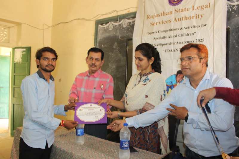 समारोह में उच्चतम न्यायालय के न्यायाधीश जे.के. माहेश्वरी, राजस्थान उच्य न्यायालय के न्यायाधीश एस पी शर्मा ने मौजूद रहकर दिव्यांग छात्रों का उत्साहवर्धन किया। इस अवसर पर अतिरिक्त एवं सत्र न्यायाधीश जयपुर महानगर पल्लवी शर्मा तथा प्रधानाचार्य भरत जोशी ने विजेता रहे विद्यार्थियों को मैडल व प्रमाण पत्र वितरित कर उत्साहवर्धन किया।