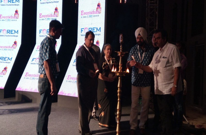 जयपुर . रविवार की फेडरेशन आॅफ राजस्थान इवेन्ट मैनजर्स का दो दिवसीय वार्षिक सम्मेलन‘‘इवेन्टस्थान‘‘का आयोजन जेडब्लू मेरियट में शुरू हुआ। इस कन्वेंशन में देश विदेश के इवेंट मैनेजर , वैडिंग प्लानर्स, फ़ूड डेकोरेटर्स और तकनीकी विशेषज्ञो के साथ- साथ एन्टरटेनमेंट, इंटरनेशनल इवेंट, कॉर्पोरेट इवेंट के बारे में चर्चा की गई। इस अवसर पर राजस्थान पर्यटन विभाग की ओर से अतिरिक्त निदेशक पर्यटन विभाग राजस्थान संजय पाण्डेय ने एक प्रेजेंटेशन दी। प्रेजेंटेशन से पहले उन्होंने ‘फोरम‘ को इस आयोजन के लिए शुभकामनाएं दी। उन्होंने बताया कि पर्यटन विभाग ने जनवरी 2016 में प्रदेश में पर्यटकों की वृद्धि के लिए मार्केटिंग कम्पैन की शुरुआत की थी। इस प्रकार के मार्केटिंग कैम्पेन से प्रदेश में पर्यटकों की संख्या में इजाफा हुआ है।
