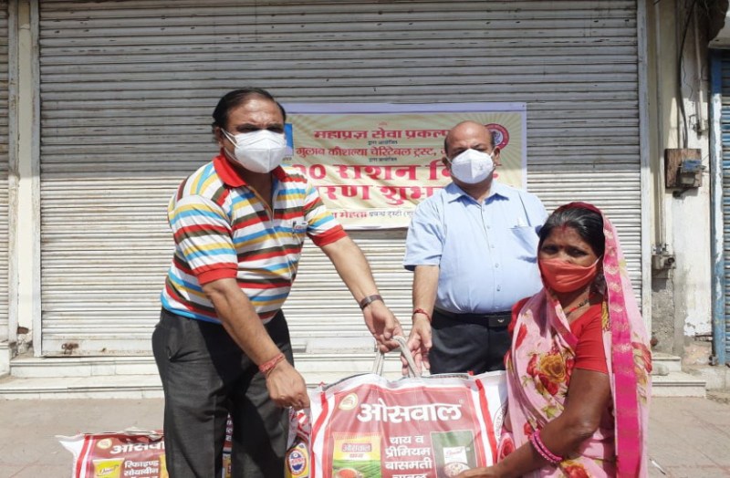 Jaipur महाप्रज्ञ सेवा प्रकल्प के अन्तर्गत गुलाब कौशल्या चेरिटेबल ट्रस्ट जयपुर की ओर से असहाय, निर्धन और जरुरतमंद लोगों को 500 राशन सामग्री किट वितरण अभियान के अंतिम चरण में शनिवार को 50 परिवारों को राशन सामग्री किट दिया गया। कोरोना महामारी की वजह से प्रभावित लोगों में कोई भूखा ना सोए, इस उद्रेश्य से इन किट का वितरण किया जा रहा है। इस दौरान आयोजित इस कार्यक्रम में ट्रस्ट के मुख्य ट्रस्टी नरेश मेहता, जैन सोश्यल ग्रुप मेट्रो के संस्थापक अध्यक्ष विनोद जैन ’कोटखावदा’ सहित कई समाजसेवी उपस्थित थे।