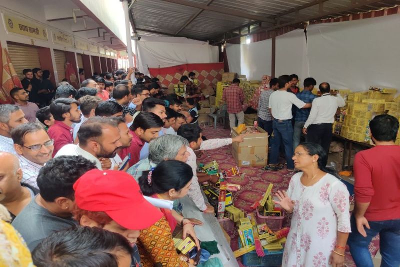 जयपुर। दीपावली का त्योहार नजदीक आने के साथ ही बाजार में पटाखों की बिक्री परवान पर है। बाजार में कम प्रदूषण फैलाने वाले पटाखें अधिक पसंद किए जा रहे हैं। इस बार भी शहर में भवानी सिंह रोड पर दीपोत्सव मेले में शिवकाशी के पटाखे बिक रहे हैं, जहां लोगों की भीड़ जुटी हैं। यहां पटाखों की बिक्री जोरों पर हो रही है। पटाखे खरीदने के लिए यहां लोगों की लाइनें लग रही है।
