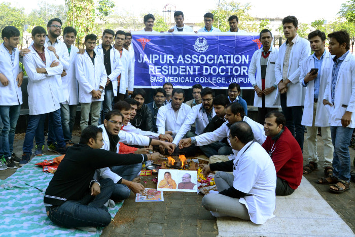 इधर, जयपुर एसोसिएशन ऑफ रेजीडेंट डॉक्टर्स जार्ड की ओर से बुधवार को सवाई मानसिंह अस्पताल के आउटडोर के बाहर राज्य सरकार की सद्बुद्धि के लिए यज्ञ किया गया। जयपुर एसोसिएशन ऑफ रेजिडेंट डॉक्टर्स के अध्यक्ष डॉ रवि जाखड़ और महासचिव डॉ रमेश देवासी ने बताया कि राज्य सरकार की ओर से रेजिडेंट्स का स्टाईपैंड बढ़ाया गया, लेकिन यह सातवे वेतनमान के अनुरूप नहीं है। इसके अलावा अन्य मांगों को लेकर रेजिडेंट्स ने आंदोलन शुरू किया है।
