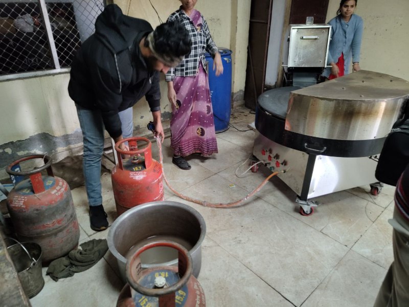 इस रसोई में घरेलू गैस सिलेंडर से ही खाना बनाया जा रहा था। रोजाना 400-450 लोगों का खाना पूरे दिन में बनता है। हर दूसरे दिन सिलेंडर खत्म हो जाता है। यहां शुरुआत से ही घरेलू गैस सिलेंडर ही उपयोग में आ रहा है।