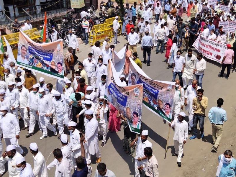 प्रदेश कांग्रेस की ओर से शहीद स्मारक तक पैदल मार्च किया