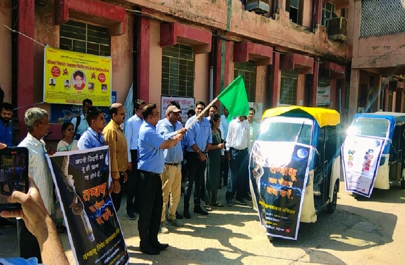 जयपुर । मुख्य चिकित्सा एवं स्वास्थ्य अधिकारी, जयपुर प्रथम डॉ. विजय सिंह फौजदार के निर्देशन में सीएमएचओ कार्यालय, मिनी स्वास्थ्य भवन परिसर से तम्बाकू जागरूकता हेतु माईकिंग ई-रिक्शा को हरी झंडी दिखाकर रवाना किया गया। ये ई-रिक्शा शहरी क्षेत्रों में घूमकर लोगों को तम्बाकू के प्रति जागरूक करेंगे।