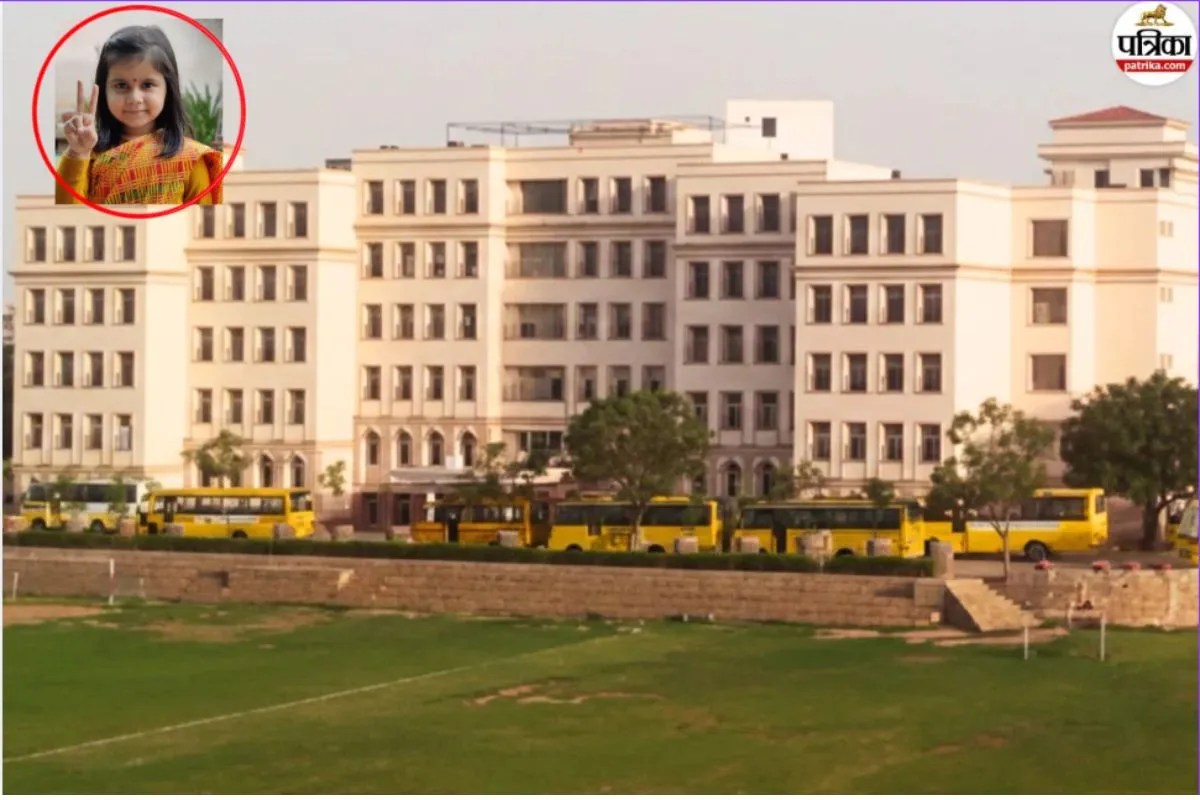 नीरजा मोदी स्कूल, इनसेट में मृतक छात्रा अमायरा, पत्रिका फाइल फोटो