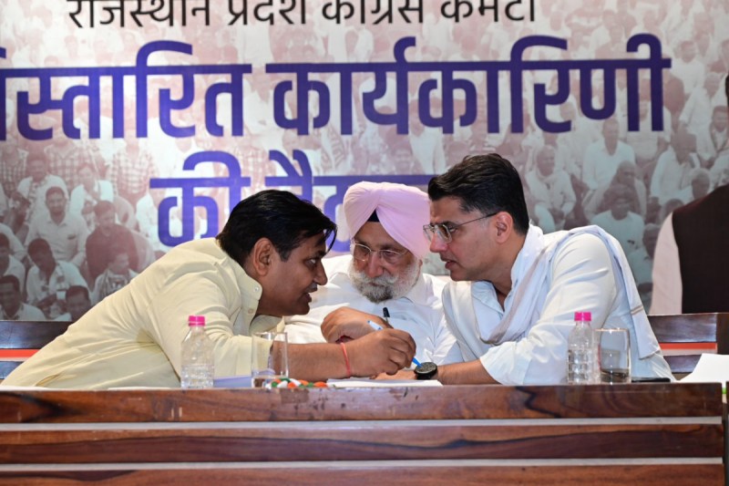 कांग्रेस प्रदेशाध्यक्ष गोविन्द सिंह डोटासरा की अध्यक्षता में आयोजित बैठक में अखिल भारतीय कांग्रेस कमेटी के राजस्थान प्रभारी एवं सांसद सुखजिन्दर सिंह रंधावा, नेता प्रतिपक्ष टीकाराम जूली, एआईसीसी महासचिव सचिन पायलट, एआईसीसी सह प्रभारी ऋत्विक मकवाना, चिरंजीव राव सहित प्रदेश प्रभारी पदाधिकारी, विधायक, विधायक प्रत्याशी, सांसद, सांसद प्रत्याशी तथा जिलाध्यक्ष एवं एआईसीसी डेलीगेट शामिल हुए। बैठक में संगठनात्मक विषयों पर चर्चा करते हुए डोटासरा एवं रंधावा ने संगठन के बूथ से लेकर जिलों तक के सभी रिक्त पदों को भरने हेतु पात्र कार्यकर्ताओं के चयन के निर्देश दिए।
