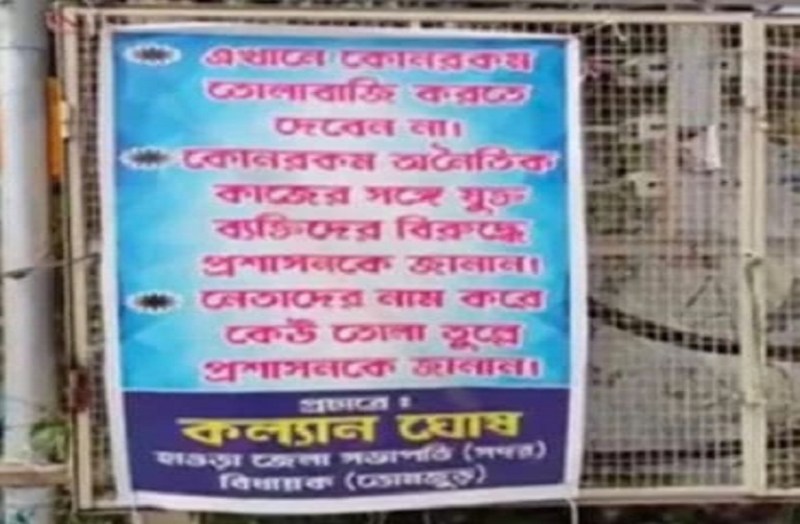 स्थानीय विधायक कल्याण घोष की ओर से लगाया गया रंगदारी नहीं देने की अपील का पोस्टर।