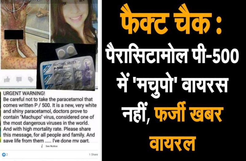 Fact Check : पैरासिटामोल पी-500 में 'मचुपो' वायरस नहीं, फर्जी खबर वायरल