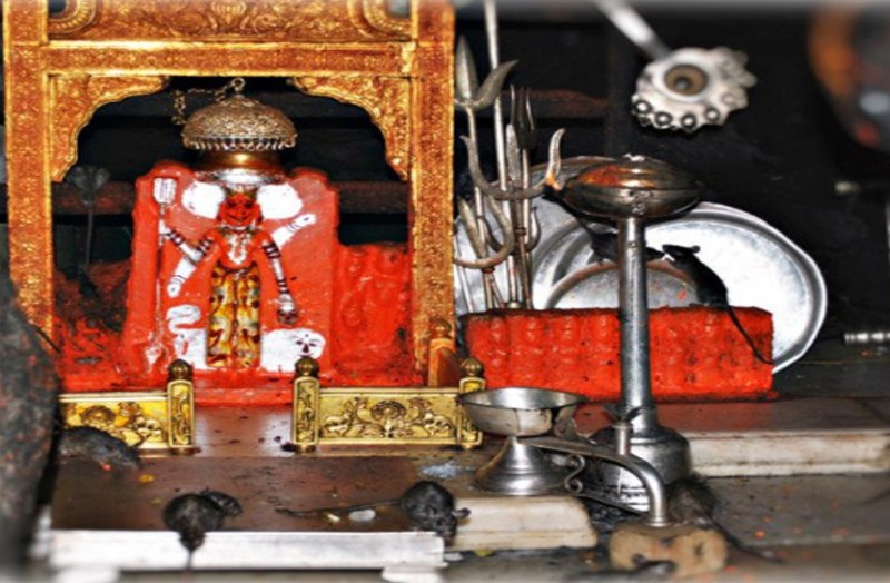 राजस्थान के बीकानेर से लगभग 30 किलो मीटर दूर देशनोक में स्तिथ करणी माता का मंदिर जिसे चूहों वाली माता, चूहों वाला मंदिर और मूषक मंदिर के नाम से भी जाना जाता है। वैसे तो हमें गलती से भी घर में चूहा दिख जाएं तो हम इधर से उधर भागने लगते है। लेकिन माता के इस मंदिर में चूहों की होती है पूजा। इस मंदिर में चूहों के अलावा, संगमरमर के मुख्य द्वार पर की गई उत्कृष्ट कारीगरी, मुख्य द्वार पर लगे चांदी के बड़े बड़े किवाड़, माता के सोने के छत्र और चूहों के प्रसाद के लिए रखी चांदी की बहुत बड़ी परात भी मुख्य आकर्षण है। लोगों का कहना है की मंदिर में अगर सफेद चूहे का दिखना बहुत शुभ माना जाता है।