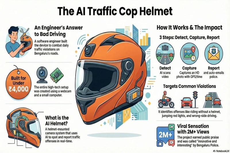 AI Helmet: जयपुर. बेंगलूरु की सड़कों पर रोजाना होने वाले ट्रैफिक नियमों की धज्जियां उड़ाने से तंग आकर एक सॉफ्टवेयर इंजीनियर ने आम हेलमेट को AI-पावर्ड 'ट्रैफिकपुलिस' में बदल दिया। 27 वर्षीय पंकज तंवर ने अपने हेलमेट में कैमरा और एआई सिस्टम फिट करके ऐसा डिवाइस बनाया है, जो रीयल-टाइम में ट्रैफिक उल्लंघन पकड़ता है और सबूत समेत पुलिस को ईमेल कर देता है। बेंगलुरु का 'ट्रैफिकवॉचडॉग' हेलमेट राजस्थान में भी बहुत जरूरी है, खासकर जयपुर में जहां लापरवाह ड्राइविंग और ओवरस्पीडिंग की घटनाएं लगातार बढ़ रही हैं। हाल ही जयपुर में 9 जनवरी को मानसरोवर इलाके में एक सड़क हादसे हुआ, जिसमें एक जने की जान चली गई और कई घायल हाे गए।