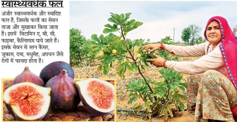 दौसा जिले के ग्राम पंचायत खानवास की ढाणी गांवली में अंजीर की खेती हो रही है। पेशे से अध्यापिका मीरा मीणा ने अंजीर की खेती वर्ष 2018 में पचास पौधों से की थी। पति कमलेश मीणा भी अध्यापक है, उनका भी साथ मिला और अच्छी फसल हुई। इससे उन्होंने बड़े स्तर पर खेती करना तय किया। इसके लिए नागपुर से दो हजार पौधे मंगवाए। मीरा ने बताया कि इन पौधों की कीमत करीब पांच लाख रुपए थी। अंजीर के बीज ऑनलाइन मंगवाए। मीरा के अनुसार अंजीर के एक पेड़ पर 15 किलो अंजीर का उत्पादन हुआ है।