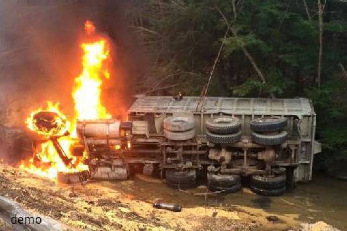 स्थानीय लोगों ने हादसे की सूचना दूदू थाना पुलिस को दी। सुचना पर पुलिस ने मौके पर पहुंच कर एक दमकल की मदद से करीब एक घंटे में आग पर काबू पाया। पुलिस के अनुसार ट्रक हरिद्वार से तमिलनाडू जा रहा था। आज सुबह करीब सात बजे महला के पास हाइटेंशन लाइन से छू जाने से ट्रक में अचानक आग लग गई। आग ने कुछ ही समय में विकराल रूप धारण कर लिया। आग से ट्रक चालक व खलासी झुलस गए।