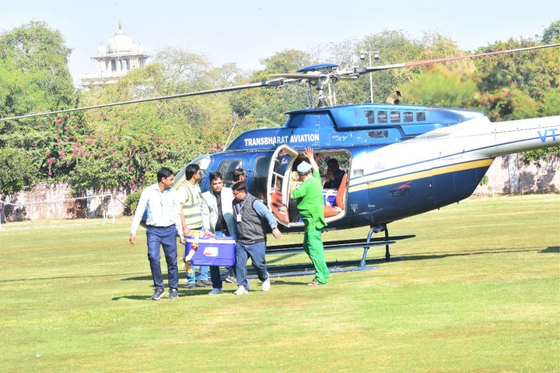 जयपुर। राजस्थान सरकार ने पहली बार ऑर्गन ट्रांसप्लांट में हेलीकॉप्टर का इस्तेमाल किया है। ताकी सही समय पर ऑर्गन ट्रांसप्लांट हो सके। जयपुर में हेलीकॉप्टर से ऑर्गन ले जाए गए है। आज सुबह करीब साढ़े ग्यारह बजे पहले हेलीकॉप्टर झालावाड़ से जयपुर पहुंचा, फिर यहां से जोधपुर के लिए रवाना हुआ।