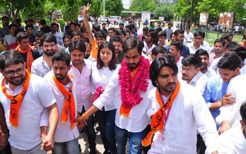 नाम वापसी के बाद राजस्थान विश्वविद्यालय में छात्रसंघ चुनाव लड़ने वाले प्रत्याशियों की तस्वीर साफ हो गई है। गत तीन सालों में पहली बार ऐसा हुआ है कि अध्यक्ष पद पर अब एबीवीपी का एक भी बागी प्रत्याशी मैदान में नहीं बचा है। लेकिन एनएसूयआई के दो बागी प्रत्याशियों ने मैदान में ताल ठोक दी है। एबीवीपी की ओर से अध्यक्ष पर पर अमित कुमार बड़बड़वाल मैदान में है। वहीं अध्यक्ष पद के लिए एबीवीपी का कोई भी बागी प्रत्याशी मैदान में नहीं है। लेकिन एनएसयूआई के सामने बागियों ने मुश्किलें पैदा कर दी हैं। एनएसयूआई के लिए अध्यक्ष पद पर उत्तम ने पर्चा भरा है। लेकिन बागी हुए मुकेश चौधरी और पूजा वर्मा ने अध्यक्ष पद से पर्चा वापस नहीं लेने से संगठन को मुसीबत में ड़ाल दिया है। वहीं एबीवीपी के लिए महासचिव पद पर अरूण शर्मा ने पर्चा भरा है तो एनएसयूआई के लिए महासचिव पद पर महावीर प्रसाद मैदान में है। लेकिन महासचिव पर एबीवीपी के दो बागी जितेन्द्र कुमार जीत और नितिन कुमार शर्मा ने पर्चा वापस नहीं लेकर संगठन की मुश्किलें बढ़ा दी हैं। वहीं एनएसयूआई से बागी हुए राजेश चौधरी मैदान में हैं तो अभिषेक मीणा, भूपसिंह गुर्जर ने भी पर्चा वापस नहीं लिया हैं।