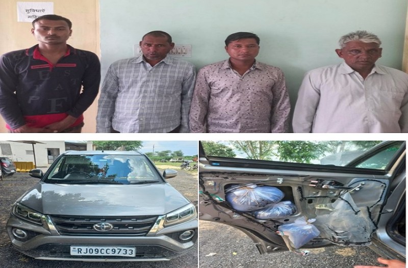 एडीजी (क्राइम) रवि प्रकाश महेरड़ा ने बताया कि शुक्रवार को पुलिस उप अधीक्षक पुष्पेन्द्र सिंह राठौड़ के नेतृत्व में टीम को मुखबिर से सूचना मिली थी कि सिंगोली मध्यप्रदेश निवासी मिट्ठू लाल धाकड़, शम्भू लाल धाकड़ निवासी सुदर्शनपुरा, बेंगू, दिनेश धाकड़ निवासी पीपलीखेड़ा, बेंगू मुकेश धाकड़ निवासी कच्छाला, सिंगोली मध्यप्रदेश जो कार से अवैध अफीम दूध सप्लाई करने मानकपुर नागौर में जा रहा हैं। इस पर सीआईडी सीबी टीम ने पुलिस थाना रायला भीलवाड़ा के साथ थाने के सामने नाकाबंदी करवाकर टोयोटा अरबन क्रूजर गाड़ी को रुकवाकर उसमें बैठे चार लोगों से पूछा तो वह संतोषजनक जबाव नहीं दे पाए। और उनकी गाड़ी की सघन तलाशी लेने पर उस गाड़ी में पीछे की खिड़कियों के गेट के अंदर प्लास्टिक को खोलकर स्कीम बनाकर उनमें 5 थैलियों में पैक करके अवैध अफीम दूध तस्करी करने के लिए ले जाया जा रहा था। जब उसने इस बारे में पूछा तो बताया कि यह अवैध अफीम दूध वो सिंगोली मध्यप्रदेश से खरीदकर नागौर सप्लाई करने लेके जा रहे थे। पूछताछ में उन्होंने बताया कि वह हर माह इसी तरह से 25 किलो तक अवैध अफीम दूध मारवाड़ की तरफ सप्लाई कर आते हैं। इस पर पुलिस थाना रायला भीलवाड़ा में एनडीपीएस एक्ट में मुकदमा दर्ज किया हैं।