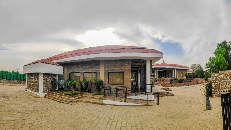 -भवन निर्माण में सादगी एवं पर्यावरण संरक्षण के लिए विशेष रूप से मिट्टी की दीवारें तैयार की गई हैं। वाटिका में केलू की छत लगाई गई है।