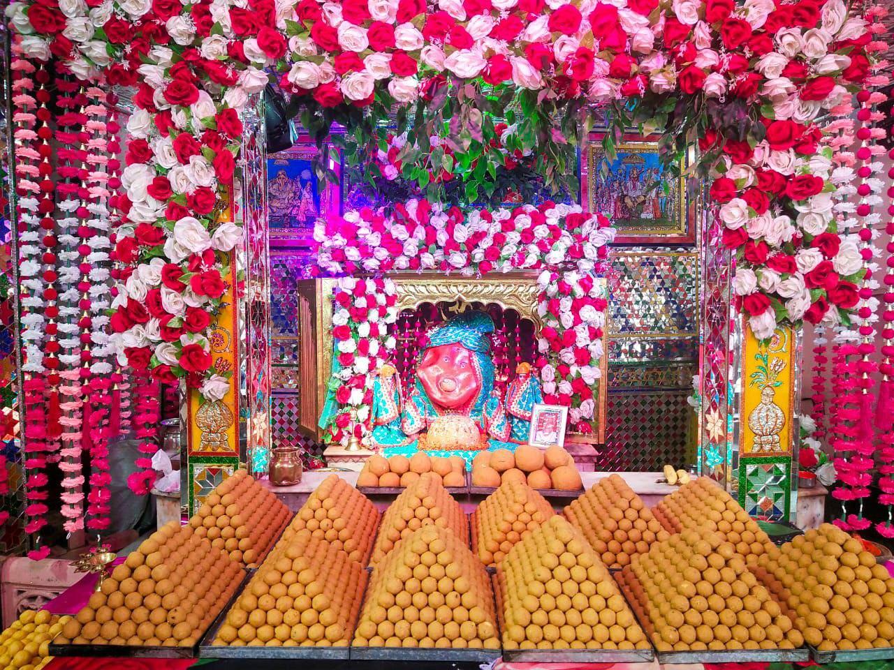 सुबह प.राहुल शर्मा के सान्निध्य में प्रथम पूज्य का अभिषेक कर गणेश जी महाराज को नवीन पोशाक धारण करवा कर फूल बंगले में विराजमान करवाया गया। मंदिर प्रवक्ता पंडित अमित शर्मा ने बताया सिंजारा महोत्सव के उपलक्ष्य में गणेशजी को मेहंदी अर्पित की गई और मोदकों की झांकी सजाई गई।
