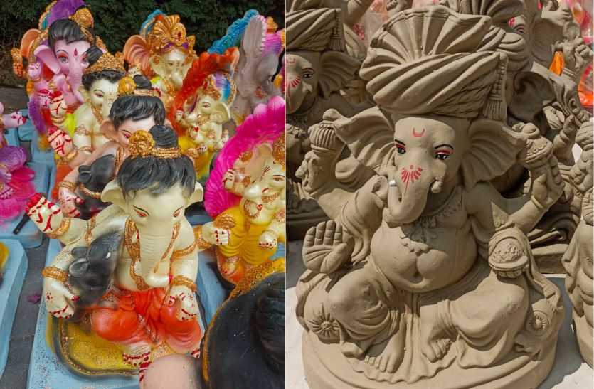 अलग-अलग स्थानों के गणपति की प्रतिमा: मूर्तिकारों के अनुसार लोगों में सबसे ज्यादा क्रेज मुंबई के लालबाग के राजा के स्वरूप वाली प्रतिमा का है। इस बार एक फीट ऊंची प्रतिमा की मांग अधिक है, जिसकी कीमत 150 रुपए से 3000 रुपए तक है। इसके अलावा मुंबई स्थित भगवान सिद्धि विनायक, पूना स्थित दगडू सेठ, मोतीडूंगरी स्थित भगवान गणेश व खुजराहो वाले भगवान गणेश के स्वरूप सहित अन्य स्वरूपों में भी भगवान गणेश की प्रतिमाएं तैयार की हैं। इनमें भगवान गजानन मूषकराज, मोर, कमल, सिंहासन व रथ पर विराजमान हैं। प्रतिमा बनाते समय उनमें तुलसी, नीम व गिलोय सहित अन्य औषधीय महत्व के पौधों के बीज भी डाले गए हैं। विसर्जन के बाद ये बीज घरों में गमले-बगीचे में पौधे का रूप लेंगे।