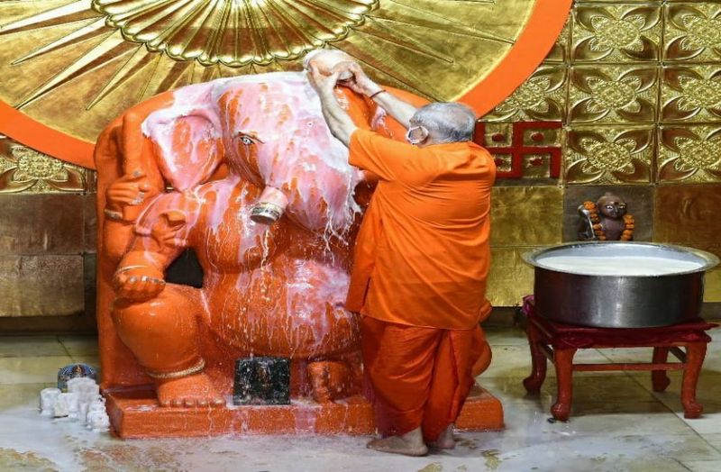 गुरु पुष्य पर भगवान गणेशजी का 672 किलो पंचामृत से अभिषेक
