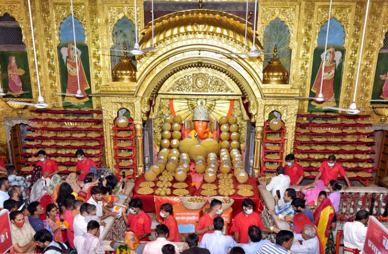 इस मौके पर भगवान फूलों के झरोखे में विराजमान रहे। महंत ने बताया कि भगवान को माणक और पन्ना युक्त विशेष मुकुट धारण कराया गया। गर्भगृह के स्वर्णिम आवरण के बीच पीले मोदकों की झांकी बहुत ही मनोरम नजर आई। शाम को भक्तों को प्रसादी वितरित की।