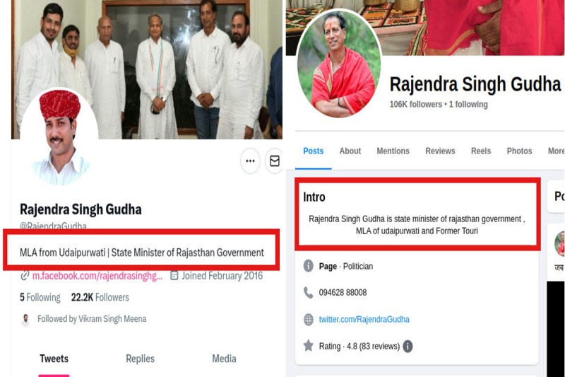 गहलोत सरकार से बर्खास्त मंत्री राजेंद्र गुढ़ा का मंत्री पद मोह लगता है अभी तक नहीं छूटा है। इसका अंदाज़ा उनकी सोशल मीडिया प्लेटफॉर्म्स पर मौजूदगी को देखकर लगाया जा सकता है। बर्खास्तगी के तीन दिन बीत जाने के बाद भी फेसबुक और ट्विटर सहित अन्य सोशल प्लेटफॉर्म्स पर वे आज भी सरकार में मंत्री पद पर काबिज़ बताए जा रहे हैं।