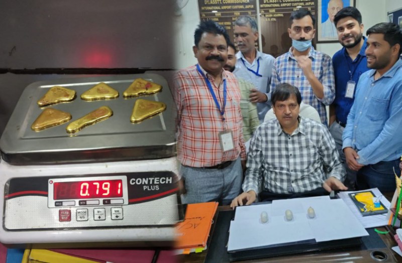 सहायक कस्टम आयुक्त भारत भूषण ने बताया कि एयरपोर्ट पर संदेह के आधार पर एक यात्री को रोका गया और पूछताछ की गई। यह यात्री शारजाह से एयर अरबिया की फ्लाइट से जयपुर आया था। संतोषजनक जवाब नहीं देने पर इस यात्री की गहनता से जांच की गई तो इसके शरीर के अंदर यानि मलाशल के अंदर सफेद पॉलीथिन में लिपटे तीन पारदर्शी पॉलीथीन कैप्सूल में पैक पीले दानों का पेस्ट दिखाई दिया। भारत भूषण ने बताया कि बरामद सोने का वजन 0.791 ग्राम और इसका मूल्य 42,79,310 रुपए है। फिलहाल यात्री को गिरफ्तार कर लिया गया है। यात्री से आगे की पूछताछ जारी है।