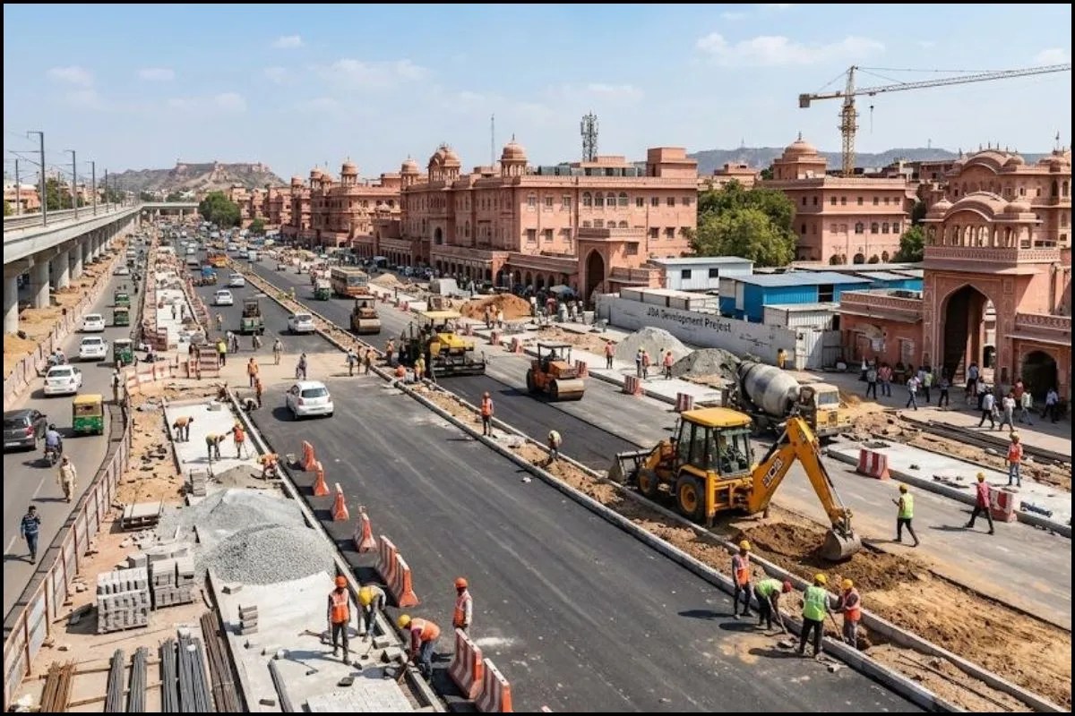 जयपुर शहर में विकास को दर्शाती एआई की मदद से तैयार प्रतीकात्मक तस्वीर