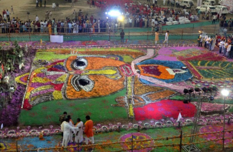 एमएसजे कॉलेज ग्राउंड में 108 फीट का गोवर्धन बनाने में हजारों को किलो गोबर उपयोग में लिया गया है। कार्यक्रम के आयोजक दावा कर रहे है कि भगवान गोवर्धन की लेटी हुई 108 फीट की यह प्रतिमा दुनिया में कहीं भी बनने वाली गोवर्धन प्रतिमा में सबसे बड़ी है। इसलिए इसे लिम्का बुक ऑफ रिकॉर्ड्स में दर्ज किया जाए।