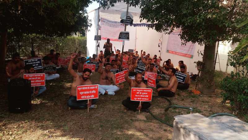 उधर मंगलवार को पशुधन भवन के समक्ष अपनी मांगों को लेकर अनशन पर बैठे पशुधन सहायकों ने अपनी मांगों को पूरा कराने के लिए पशुधन भवन के समक्ष अर्धनग्न प्रदर्शन किया। पशुधन सहायकों का कहना है कि सरकार ने अगर मांगे पूरी नहीं की तो पूरे प्रदेश में कार्य का बहिष्कार किया जाएगा।