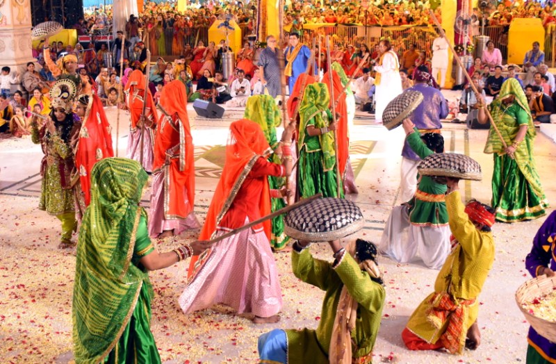 कार्यक्रम का मुख्य आकर्षण का केन्द्र 60 कलाकारों की ओर से बरसाने की लट्टमार होली रही। इससे पहले जगदीश शर्मा ने गणेश वंदना रुणक-झुणक पग घुंघरू बांध, गजानंद नाचे की प्रस्तुति से कार्यक्रम की शुरुआत महंत अंजन गोस्वामी के सान्निध्य में की। कुंज बिहारी राजू ने आज ब्रज में होरी रे रसिया, संजय रायजादा, मंजू शर्मा ने रंग बरसे गुलाबी रत नारी नैना की प्रस्तुति दी। मधु भट्ट तैलंग ने ध्रुपद धमाल सुनाई। वहीं रूपसिंह शेखावत ने भवई नृत्य की प्रस्तुति दी। दिल्ली के हरीश गंगानी, मंजरी महाजन, मनीषा गुलायान सहित अन्य कलाकारों ने जयपुर घराने की कथक नृत्य की प्रस्तुति दी।
