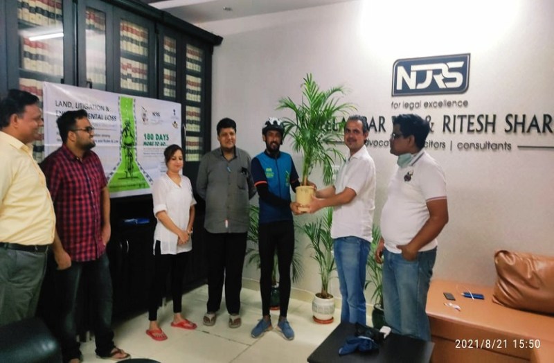 जयपुर। प्रदेश में वन भूमि पर अतिक्रमण और मुकदमेबाजी से होने वाली पर्यावरणीय क्षति के संभावित समाधान को लेकर लैंड्स लिटिगेशन एंड एन्वायरनमेंट लॉस मुहिम के तहत वन विभाग, मैं भारत फाउंडेशन और एनजेआरएस लॉ ऑफिसेज के कानूनी विशेष लैंड्स लिटिगेशन एंड एन्वायरनमेंट लॉस कार्यक्रम चला रहा है। जिसकी शुरुआत पूर्व हैड ऑफ फॉरेस्ट श्रुति शर्मा ने रणथंभौर राष्ट्रीय उद्यान की खंडार रेंज से की थी। रविवार को गोल्डन बुक ऑफ वल्र्ड रिकॉर्ड विजेता और ग्रीन मैन के नाम से विख्यात मशहूर साइक्लिस्ट नरपत सिंह राजपुरोहित का जयपुर पहुंचने पर मैं भारत फाउंडेशन , एनजेआरएस लॉ ऑफिसेज के पदाधिकारियों एवं कानून विशेषज्ञों ने उनका स्वागत किया। इस दौरान संयुक्त अभिभावक संघ के पदाधिकारियों ने भी उनसे मुलाकात की।