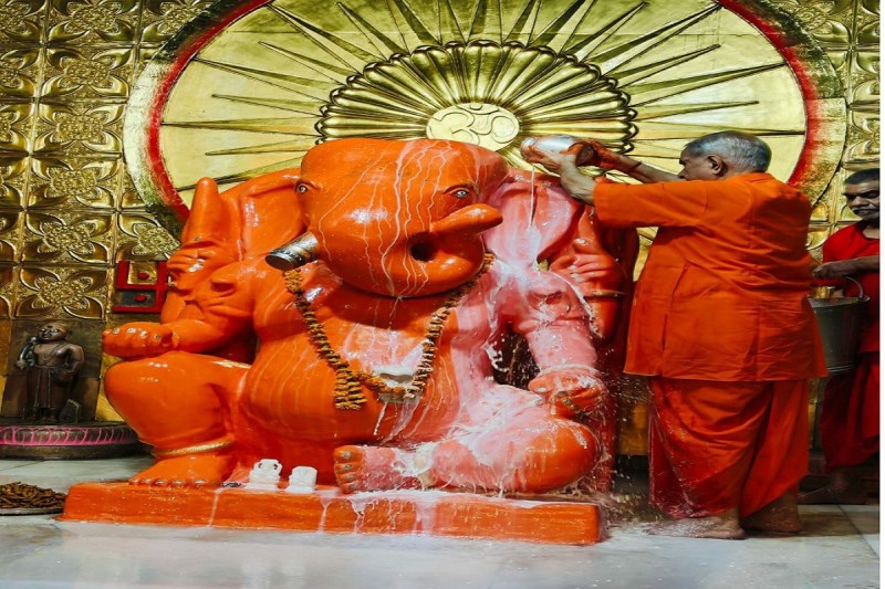मोती डूंगरी गणेशजी का पुष्य नक्षत्र पर पंचामृत अभिषेक।
