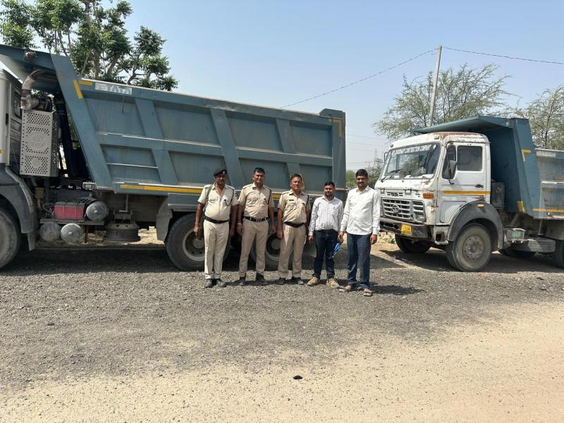 जयपुर। जयपुर जिले में अवैध खनन एवं खनिज परिवहन पर जिला प्रशासन ने बड़ी और सख्त कार्रवाई की है। जिला कलक्टर डॉ. जितेन्द्र कुमार सोनी के निर्देशों पर खनिज, राजस्व और पुलिस विभाग की संयुक्त टीम ने विभिन्न थाना क्षेत्रों में दबिश देकर कुल 12 वाहनों को जब्त किया, जिनमें 9 डंपर और 3 ट्रैक्टर-ट्रॉली शामिल हैं। ये वाहन बिना वैध ई-रवन्ना के चुनाई पत्थर का परिवहन कर रहे थे। इस कार्रवाई में कुल 12 लाख रुपये से अधिक की जुर्माना राशि आरोपित की गई है। प्रशासन की इस कार्रवाई से अवैध खनन माफियाओं में हड़कंप मच गया है।
