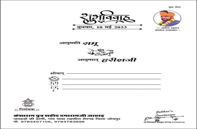 शादी का अनूठा कार्ड, बेनीवाल की फोटो लगाई, नीचे लिखा आएगा हनुमान बदलेगा राजस्थान