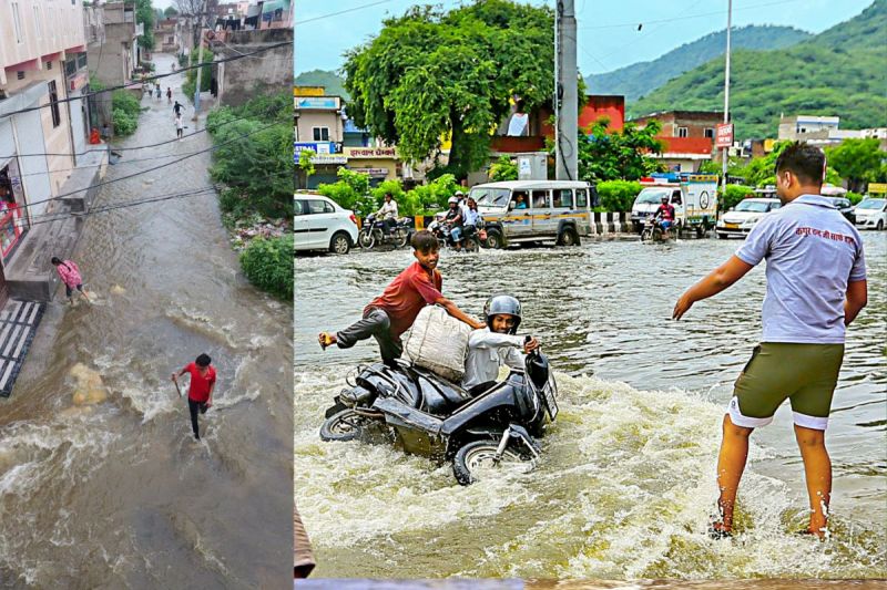 Jaipur Weather News: गुलाबी शहर सोमवार रात फिर से पानी-पानी हो गया, लेकिन जिम्मेदार तंत्र हमेशा की तरह कागजों में ही तैरता नजर आया। रातभर बरसी बारिश ने मंगलवार सुबह शहर को तालाब बना दिया,कच्ची बस्तियों से लेकर मुख्य सड़कों तक हर तरफ गंदा पानी, मिट्टी और अफरा-तफरी का आलम रहा। अफसरों की तैयारी और संसाधन बारिश की तेज धार में बह गए, जबकि जनता जलभराव, जाम और टूटी सड़कों से जूझती रही। दरअसल सोमवार रात से शुरू हुआ तेज बारिश का दौर मंगलवार सुबह तक चलता रहा। सुबह 8 बजे तक जयपुर में 88 मिलीमीटर (यानी 3.52 इंच) बारिश दर्ज की गई।