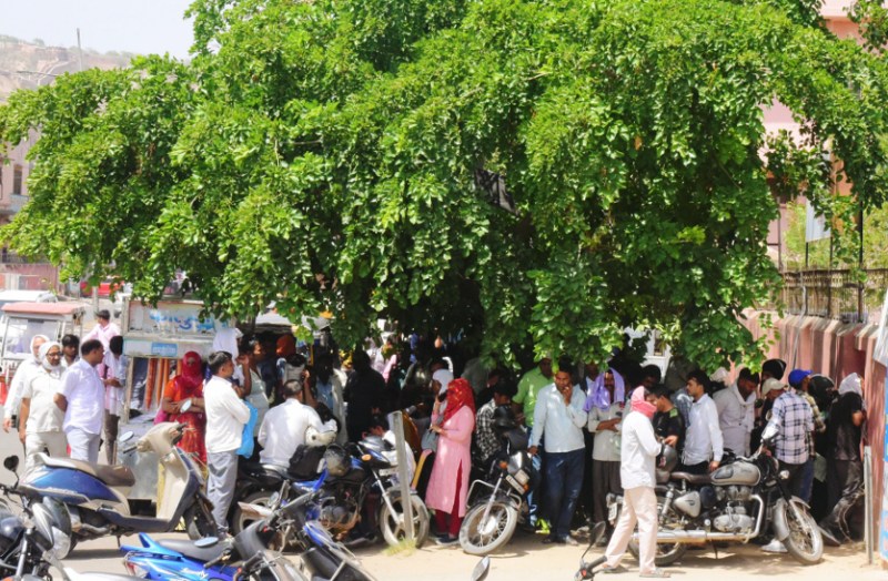 ऐसे में जहां कोई हरा पेड़ नजर आता परिजन वहां बड़ी संख्या में खड़े़े हो जाते। संसार चंद्र रोड स्थित खंडेलवाल वैश्य बालिका उच्च माध्यमिक विद्यालय में पीटीईटी की परीक्षा के दौरान एक पेड़ के नीचे 50 से भी अधिक अभिभावक गर्मी से राहत पाने की कोशिश करते नजर आए।